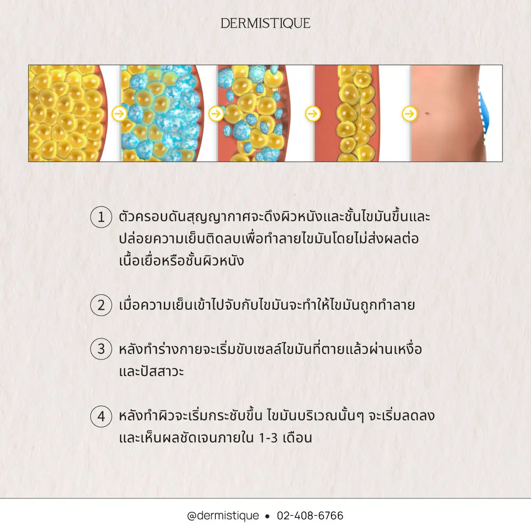 - เมื่อความเย็นเข้าไปจับกับไขมันจะทำให้ไขมันถูกทำลาย