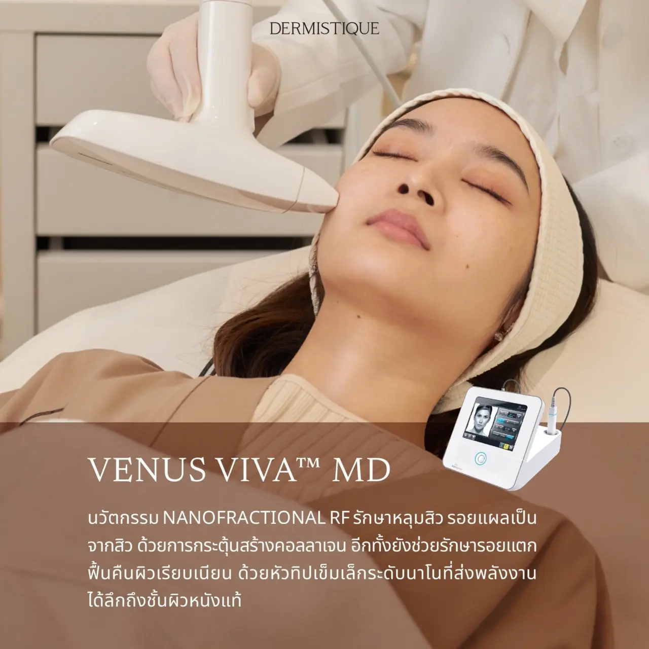สามารถทำได้ เนื่องจากโปรแกรม Venus Viva™ MD มีคุณสมบัติกระตุ้นการจัดเรียงตัวใหม่ของเส้นใยคอลลาเจน นอกจากจะทำให้หลุมสิวตื้นขึ้นแล้ว